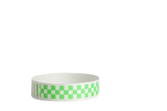 Tyvek® Wristbands – Checkerboard – Day Glo Green