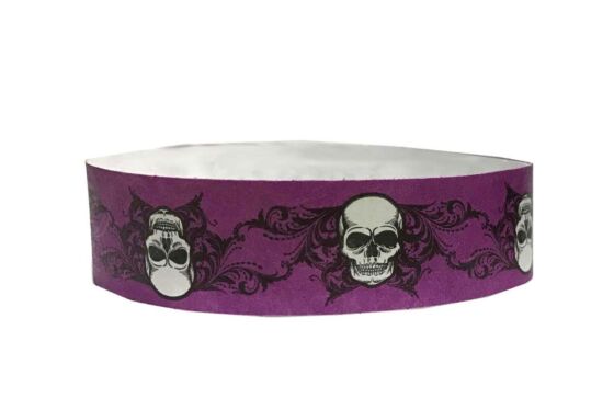 Tyvek® Wristbands – Halloween – Skulls – Purple